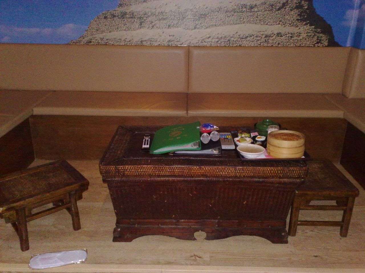 光是房門外的走道就已經有濃濃的埃及風和神秘感,讓人想趕快一探究竟,推開大大的房門,KTV區就在眼前,雖然歌曲不算太新,可是音效還不錯呢,坐在這裡吃東西.看電視也很方便,說到吃東西,那天點了鮭魚焗飯和海鮮焗麵,不過都太鹹了,還有進步空間~
