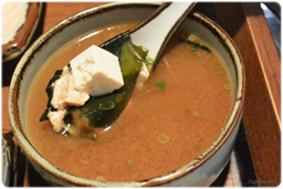 味增湯裡面有滿滿的魚肉、豆腐、海帶,用料很大方。