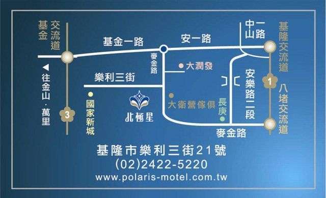 國道三號北二高:下基金交流道後,右轉直走看到本館指標,直行至圓環右轉,直走到天橋後右轉上斜坡,本館位於左方。